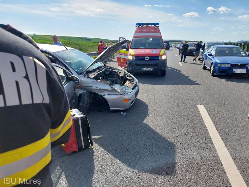 Pompierii Detașamentului Târgu Mureș intervin în aceste momente cu o autospecială de stingere și o ambulanță SMURD la un accident rutier produs la ieșirea de pe autostrada A3 sensul de mers Târgu Mureș.