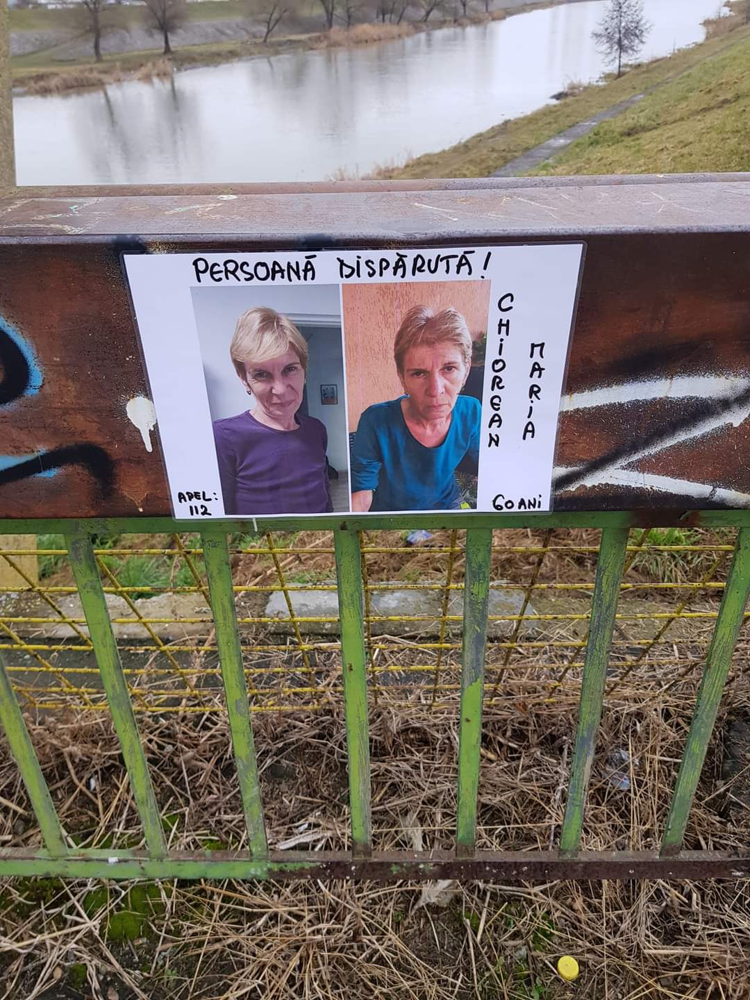Apropiații familiei au lipit noi afișe, în zona Aleea Carpați și în Piața Unirii, în speranța că femeia va fi localizată.