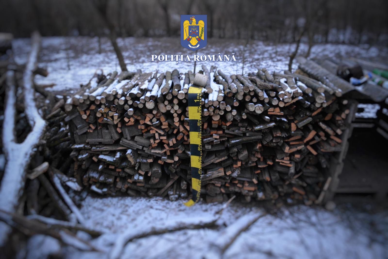 În urma perchezițiilor efectuate, polițiștii au descoperit și ridicat, în vederea confiscării, cantitatea de 25 metri cub material lemnos.