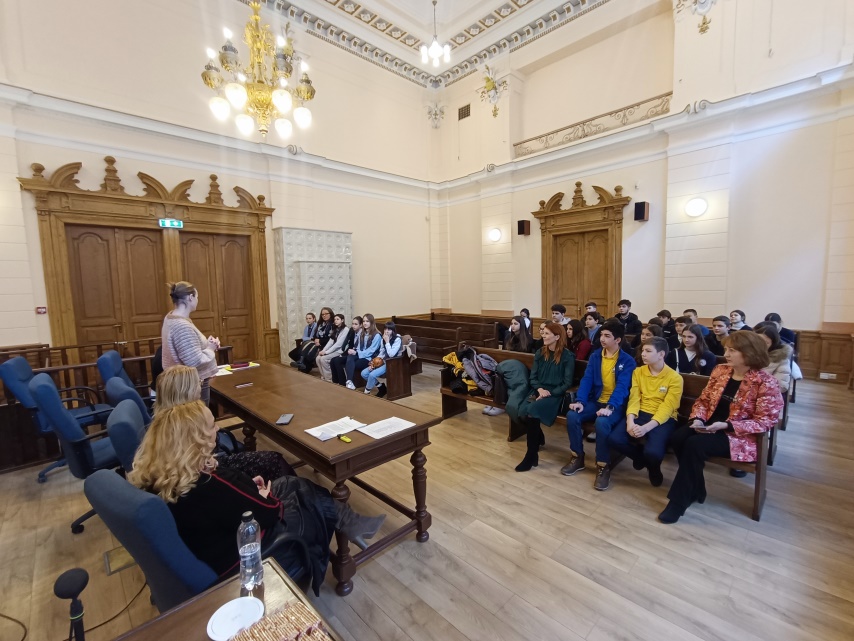 Elevii şi cadrele didactice au fost, apoi, însoţiţi într-o vizită a Palatului de Justiţie ce constituie sediul Curţii de Apel Târgu Mureş, Tribunalului Specializat Mureş şi Judecătoriei Târgu Mureş – edificiu inaugurat la data de 24 noiembrie 2023, marcând fructificarea lucrărilor de reparații și extindere la imobil, realizate cu finalitatea aducerii clădirii seculare la standarde calitative și funcționale specifice locului și rolului justiției în secolul al XXI-lea.