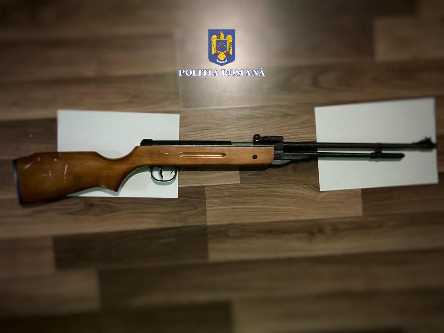 Cu această ocazie, polițiștii au descoperit o armă neletală cu aer comprimat, calibru 5,5 mm, din categoria celor supuse autorizării, precum și 218 bucăți de diaboluri, de același calibru.