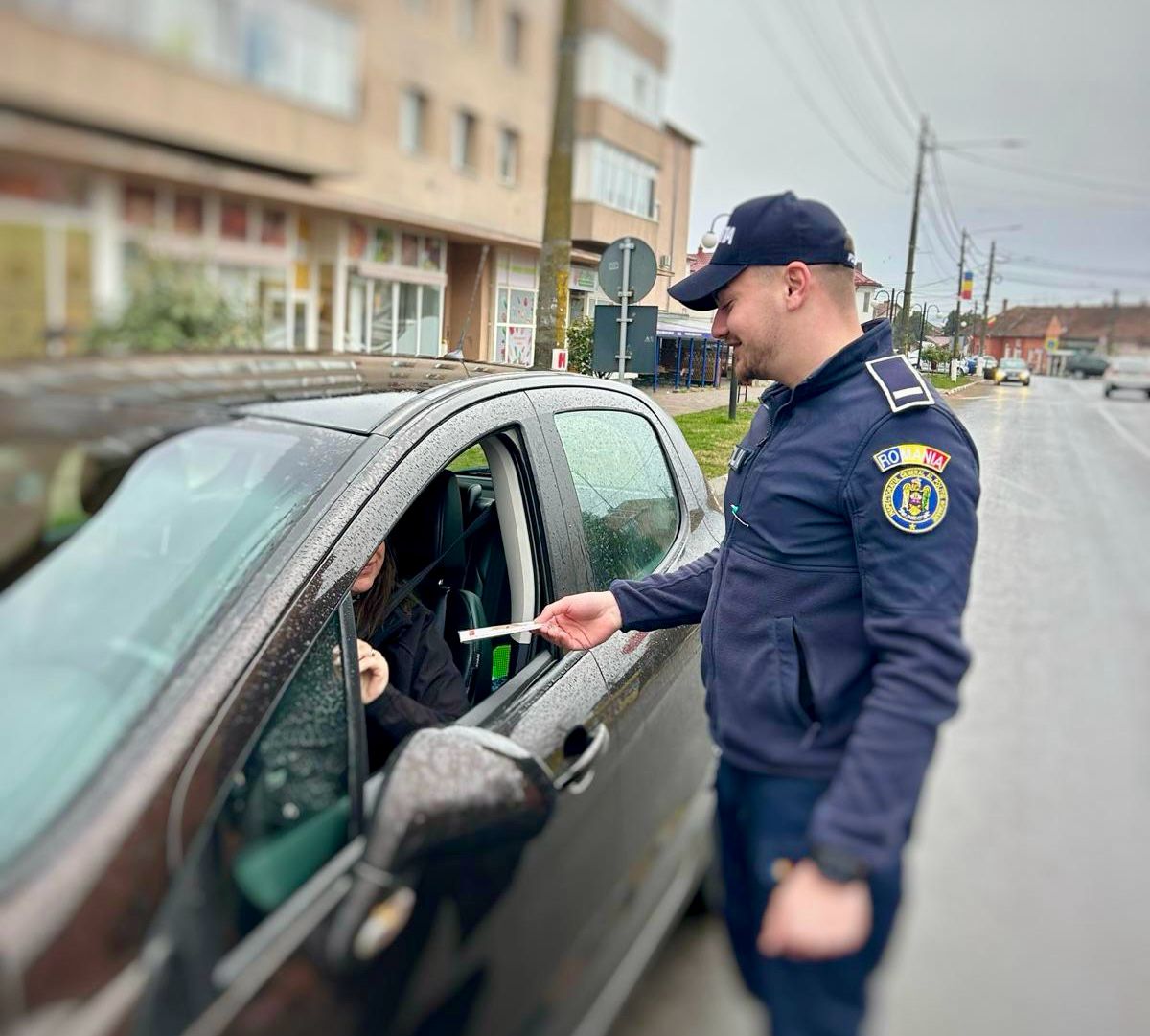 Pe lângă mărțișoare și urări de bine, nu au lipsit recomandările privind conduita responsabilă la volan.