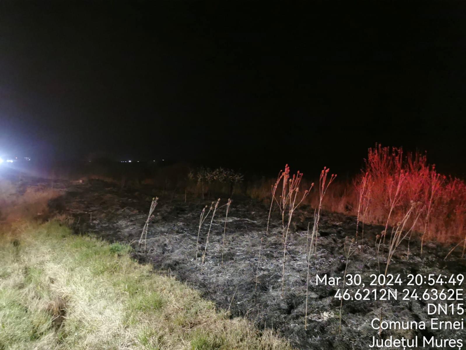 • ⁠precum și pe strada Principală din localitatea Ernei, pe o suprafață de aproximativ 10 ari, la care s-a intervenit cu o autospecială de stingere din cadrul Detașamentului Târgu Mureș.