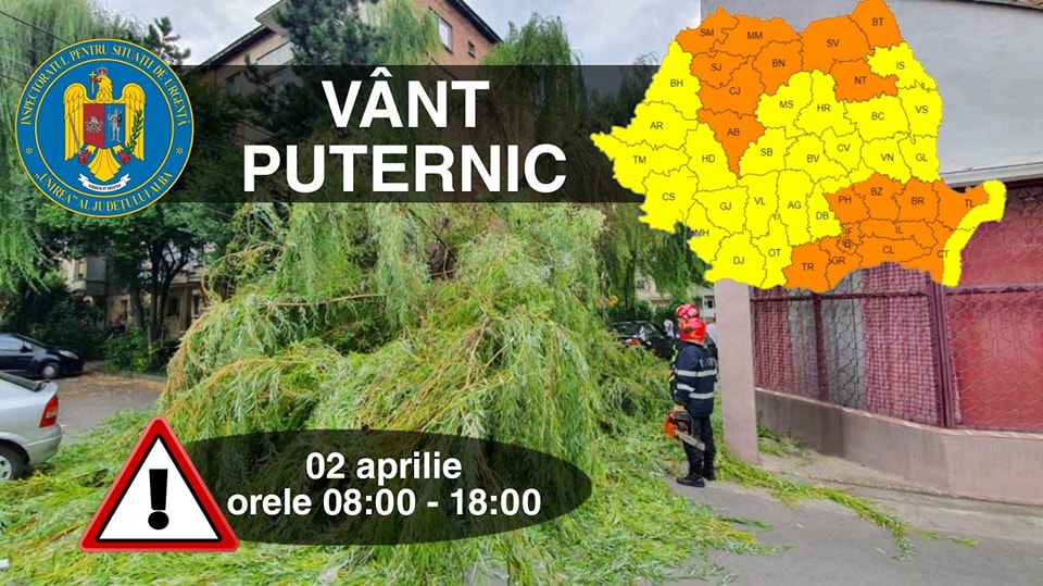 De mâine dimineață, de la ora 08:00, până după-amiază, la ora 18:00, județul nostru se va afla sub o avertizare meteorologică tip cod galben de vânt.