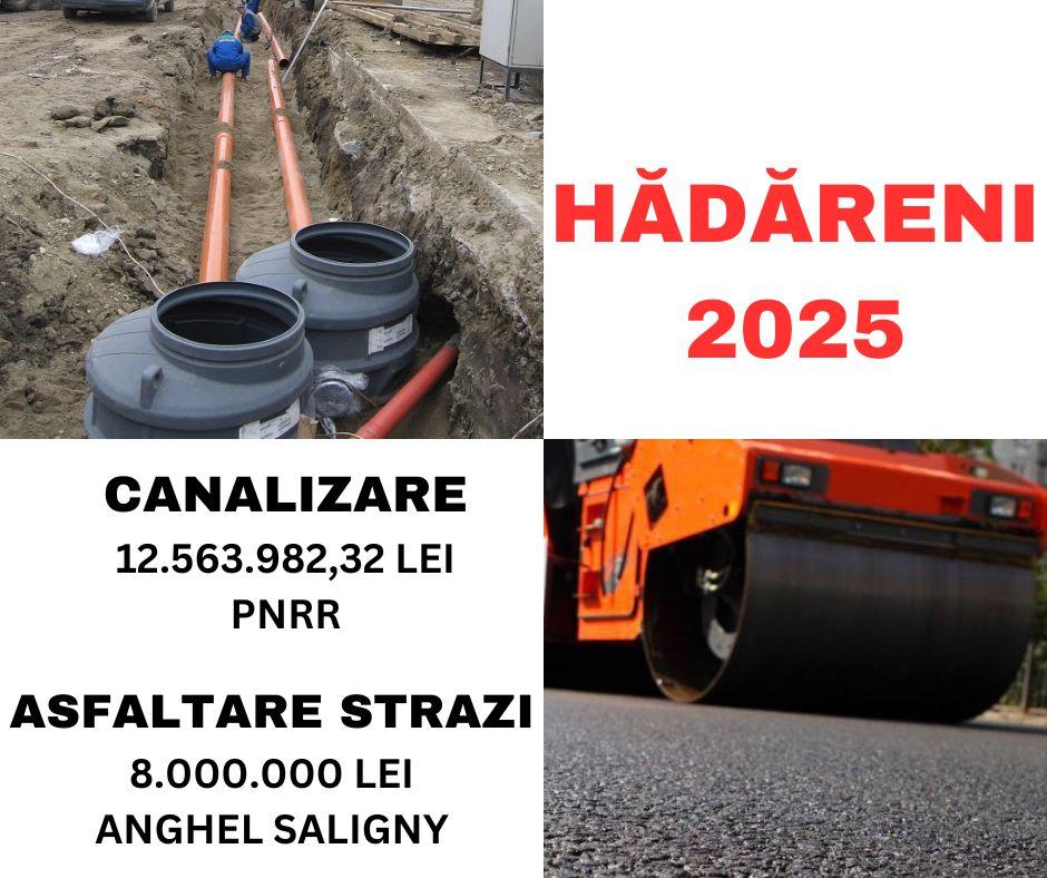 Sunt 4 milioane de euro alocate comunei noastre, satului Hădăreni, pentru dezvoltarea infrastructurii de canalizare şi asfaltare a străzilor. După parcurgerea etapelor de achiziţie publică, se va da ordinul de începere a lucrărilor.