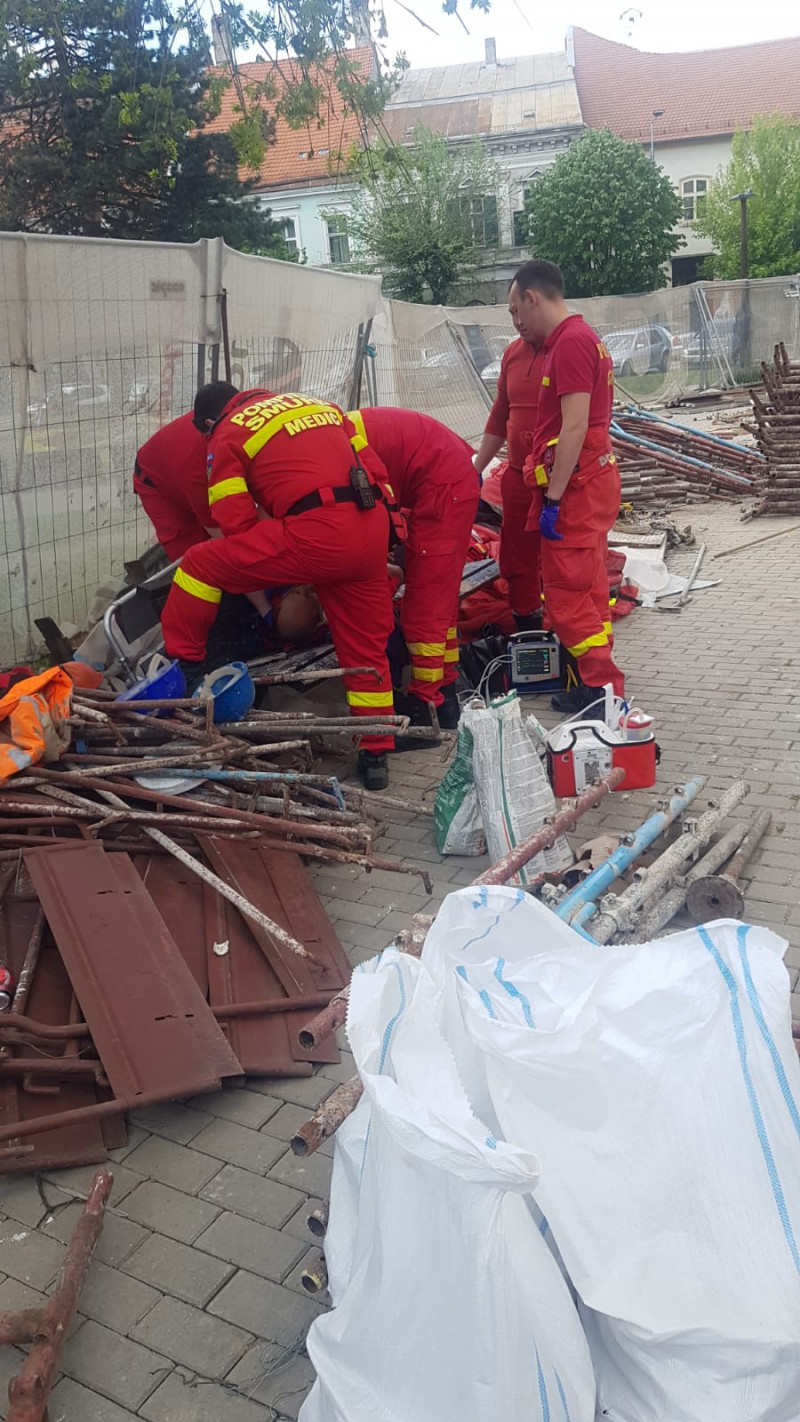 Persoana căzută de pe o schelă de 30 metri și blocată pe aceasta, în localitatea Iernut.