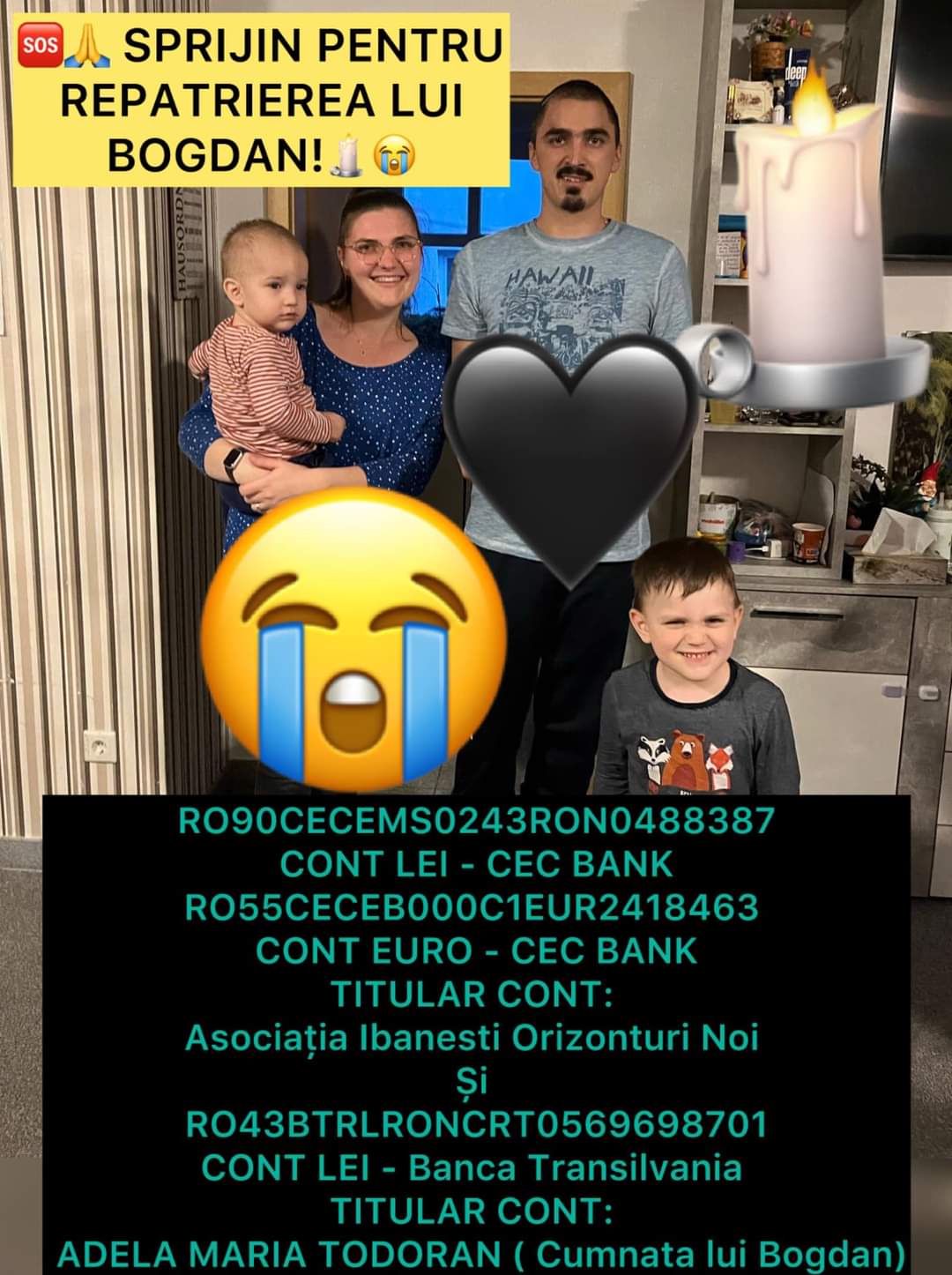 🙏Vin în fața dumneavoastră pentru a vă cere sprijinul financiar în numele familiei MAN, al soției Denisia Georgiana Man privind repatrierea lui Bogdan Man, decedat astazi în Germania.