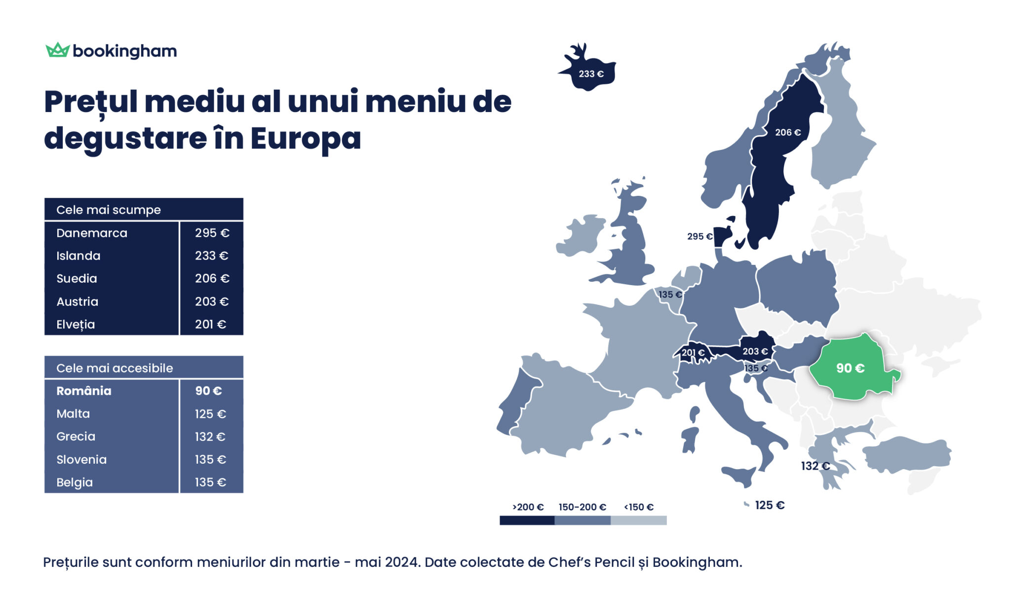 - Prețul mediu al unui meniu de degustare în România este de 90 EUR/persoană