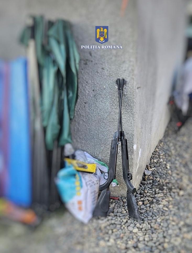 În urma percheziției au fost identificate și ridicate, în vederea continuării cercetărilor, două arme neletale de tir sportiv, calibrul 5,5 mm, supuse autorizării, cu privire la care existau indicii că ar fi fost aduse în țară, în mod ilegal, din spațiul intracomunitar.