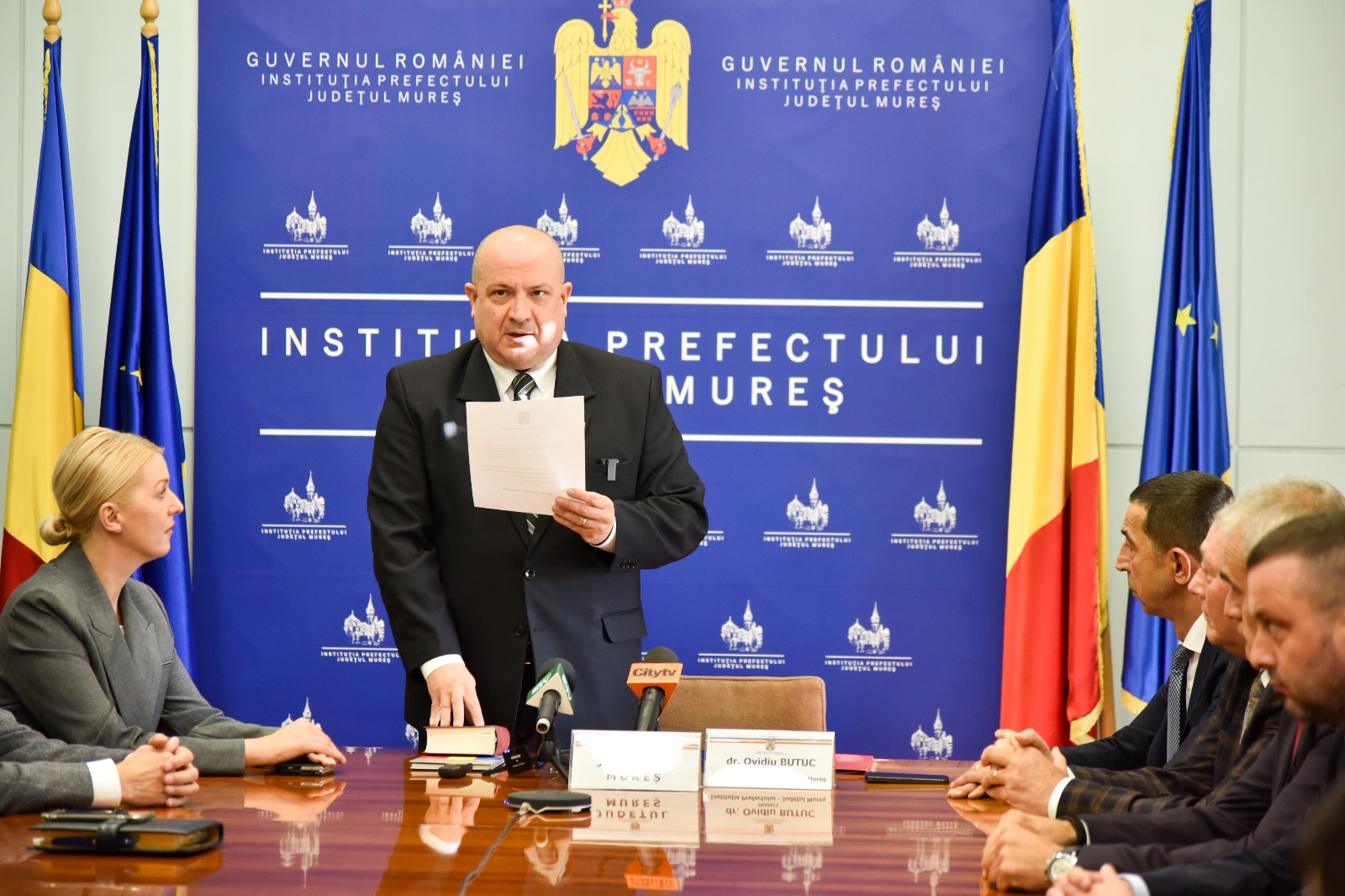 În discursul său, prefectul județului Mureș, dr. Ovidiu Butuc, a îndemnat toate instituțiile din județul Mureș să depună eforturi pentru a asigura stabilitatea și grija față de cetățean.