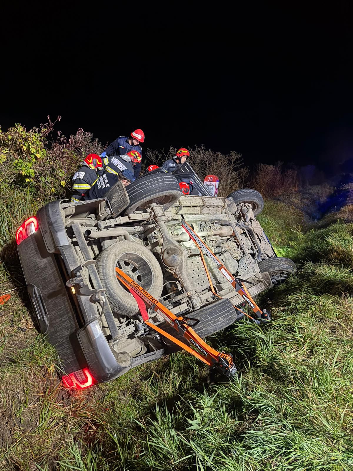 Echipele operative sosite la fața locului au constatat faptul că în evenimentul rutier a fost implicat un singur autoturism răsturnat, cu o victimă încarcerată.