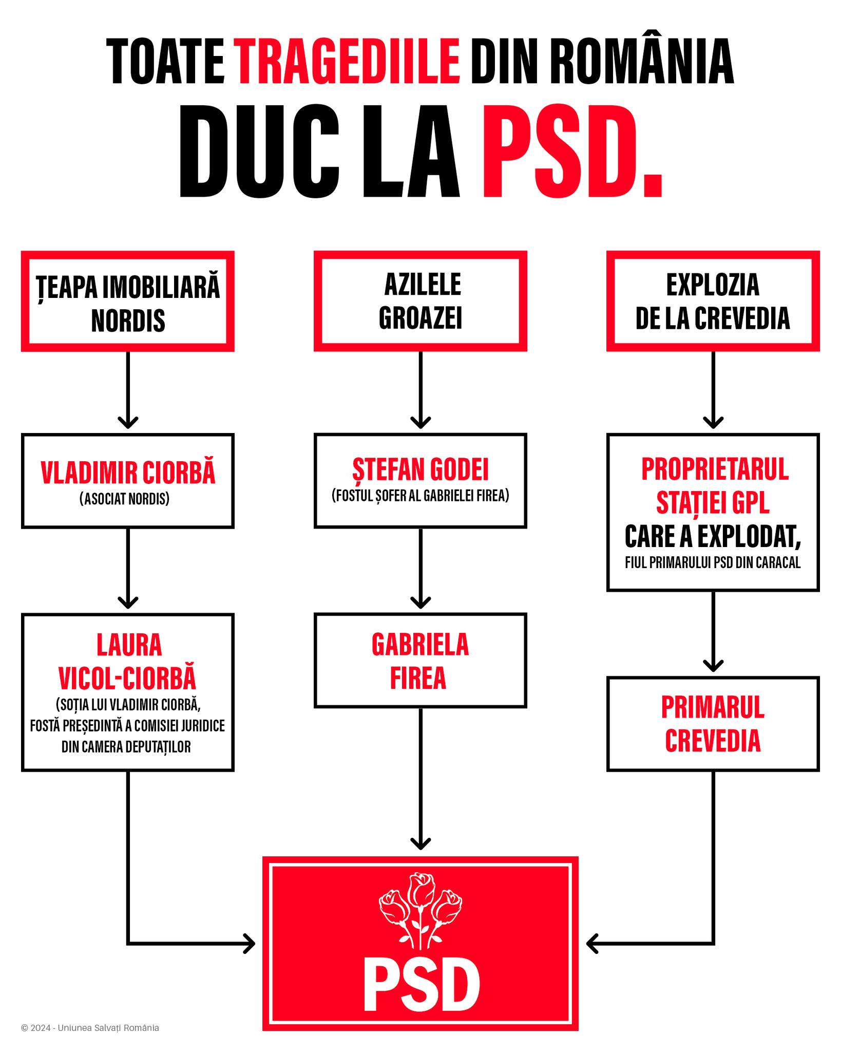 𝗘𝘅𝗽𝗹𝗼𝘇𝗶𝗮 𝗱𝗲 𝗹𝗮 𝗖𝗿𝗲𝘃𝗲𝗱𝗶𝗮 ➡️ Șase oameni au murit, peste 50 au fost răniți, zeci de case au fost distruse. 🚩 Unul dintre patronii stației GPL în care s-au produs exploziile este fiul primarului PSD din Caracal Ion Doldurea. Stația GPL funcționa ilegal. 🚩 După explozie, primarul din Caracal fost reales în funcție din partea PSD. Și tot PSD l-a susținut și pe primarul din Crevedia pentru un nou mandat.