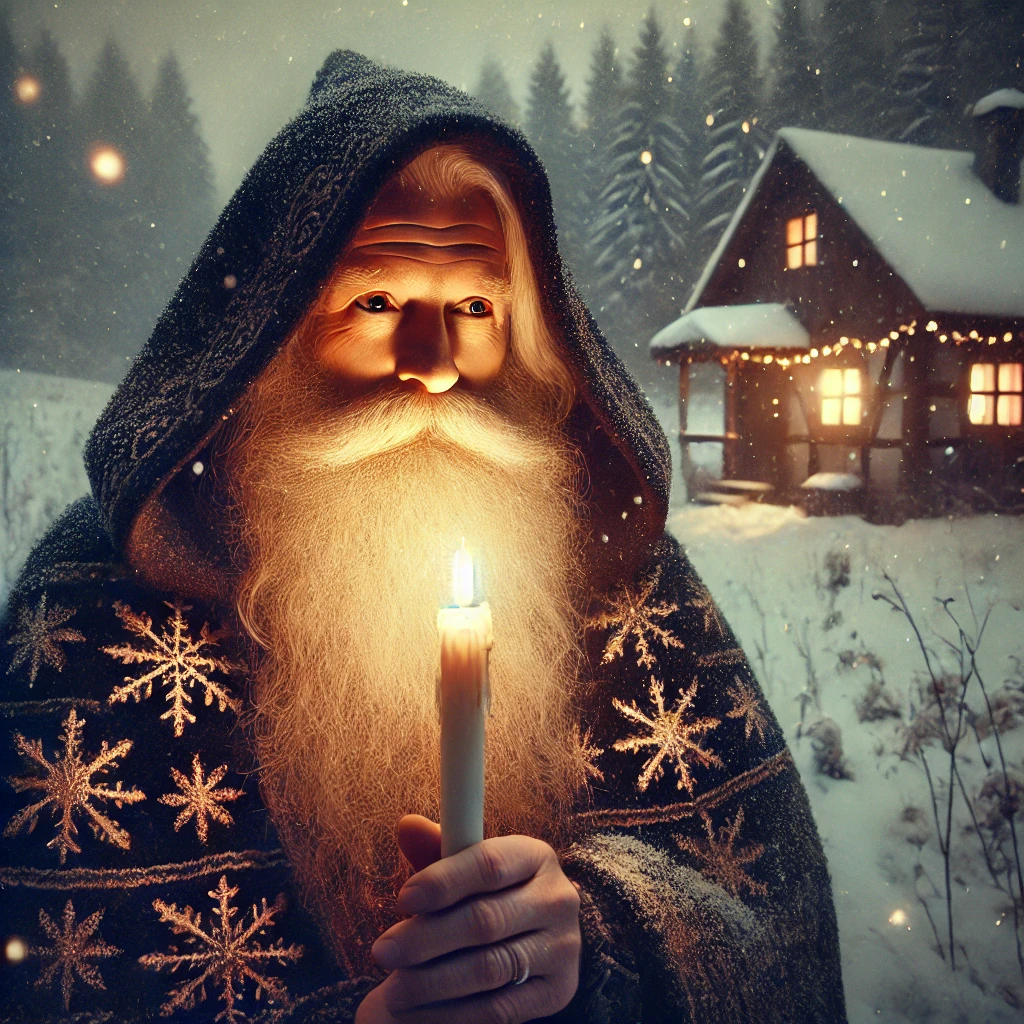Se spune că în urmă cu mulți ani, în Ajunul Crăciunului, un bătrân cu barbă albă, purtând o manta grea, a apărut pe drumul înzăpezit care șerpuia spre sat. Zăpada scârțâia sub pașii lui, iar frigul îngheța totul în jur. Ajungând în fața unei case modeste de la marginea pădurii, a bătut în ușă cerând adăpost. Deși sătenii erau săraci și cu greu își duceau traiul, l-au primit cu inima deschisă. I-au oferit o masă simplă și un loc lângă sobă, unde să-și încălzească oasele înghețate.