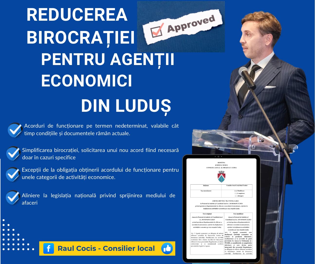 “Este un prim pas spre o administrație mai eficientă și un sprijin real pentru antreprenorii din Luduș. Le mulțumesc tuturor celor care au susținut această inițiativă și am încredere că astfel de măsuri vor aduce beneficii semnificative comunității locale”, a declarat Raul Cociș.