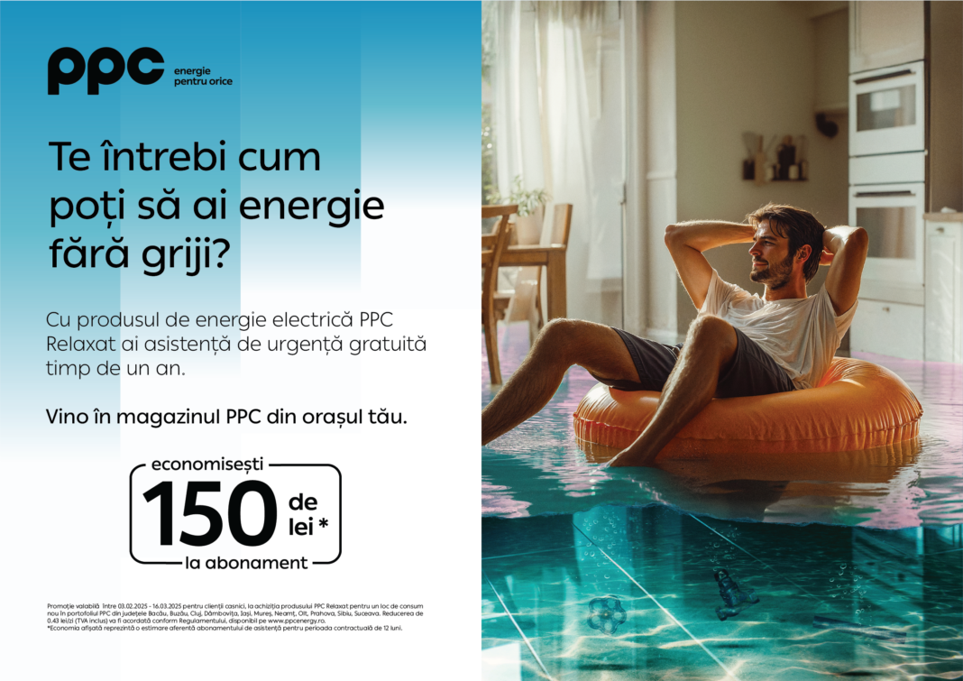 În județul Mureș, până la data de 16 martie, PPC Energie are o ofertă care îi vizează pe clienții noi care optează pentru PPC Relaxat, care include atât furnizarea energiei electrice, cât și intervenții de urgență. Astfel, beneficiezi de asistență gratuită timp de 1 an pentru abonamentul de servicii, adică o reducere cumulată, pe întreaga perioadă contractuală de 12 luni, de 150 de lei (TVA inclus). PPC Relaxat aduce clienților beneficii precum două intervenții de urgență/ an incluse în pachet, în limita a 450 de lei fiecare și acces 24/7 la servicii de asistență dedicată pentru solicitările de urgență.