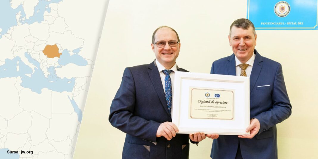 Dej. În decembrie 2024, Administrația Penitenciarului Spital Dej din România le-a acordat Martorilor lui Iehova o diplomă de merit pentru activitatea lor de instruire biblică desfășurată în cadrul instituției. Ruben Mátyás și Vasile Purdea au primit diploma prin care se recunosc meritele Martorilor care le acordă asistență religioasă persoanelor private de libertate aflate în tranzit în Penitenciarul Spital Dej. Diploma a fost acordată „în semn de aleasă prețuire și adâncă recunoștință pentru activitatea desfășurată în Penitenciarul Spital Dej de-a lungul timpului”.