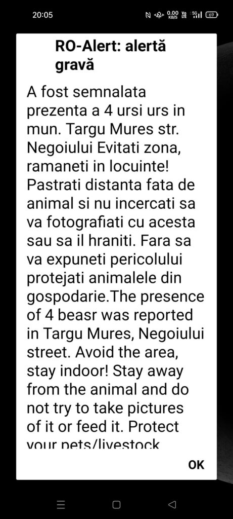 După ce, aseară, în Târgu Mureș s-a dat mesaj RO-ALert cu privire la 4 urși, jurnaliștii de la Ceasul Cetății au pornit pe străzile vizate de prezența urșilor.
