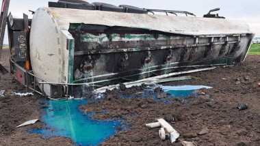 Pompieri militari din cadrul Detașamentului de Pompieri Târgu Mureș intervin în aceste momente în localitatea Acățari, pe E60, pentru asigurarea măsurilor de prevenire a incendiilor, în urma răsturnării pe carosabil a unei autocisterne care transporta adeziv tip clei pentru mobilier.
