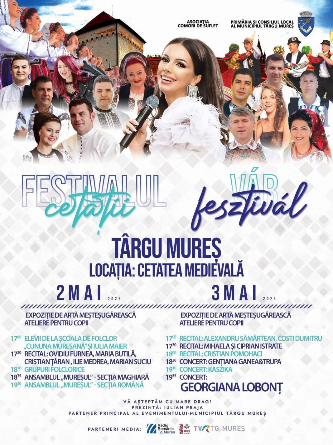 TÂRGU MUREȘ, 2-3 MAI 2025 – Cetatea Medievală din Târgu Mureș devine din nou centrul cultural al județului, odată cu desfășurarea Festivalului Cetății – Várfesztivál, un eveniment organizat de Asociația Comori de Suflet în parteneriat cu Primăria și Consiliul Local al Municipiului Târgu Mureș.
