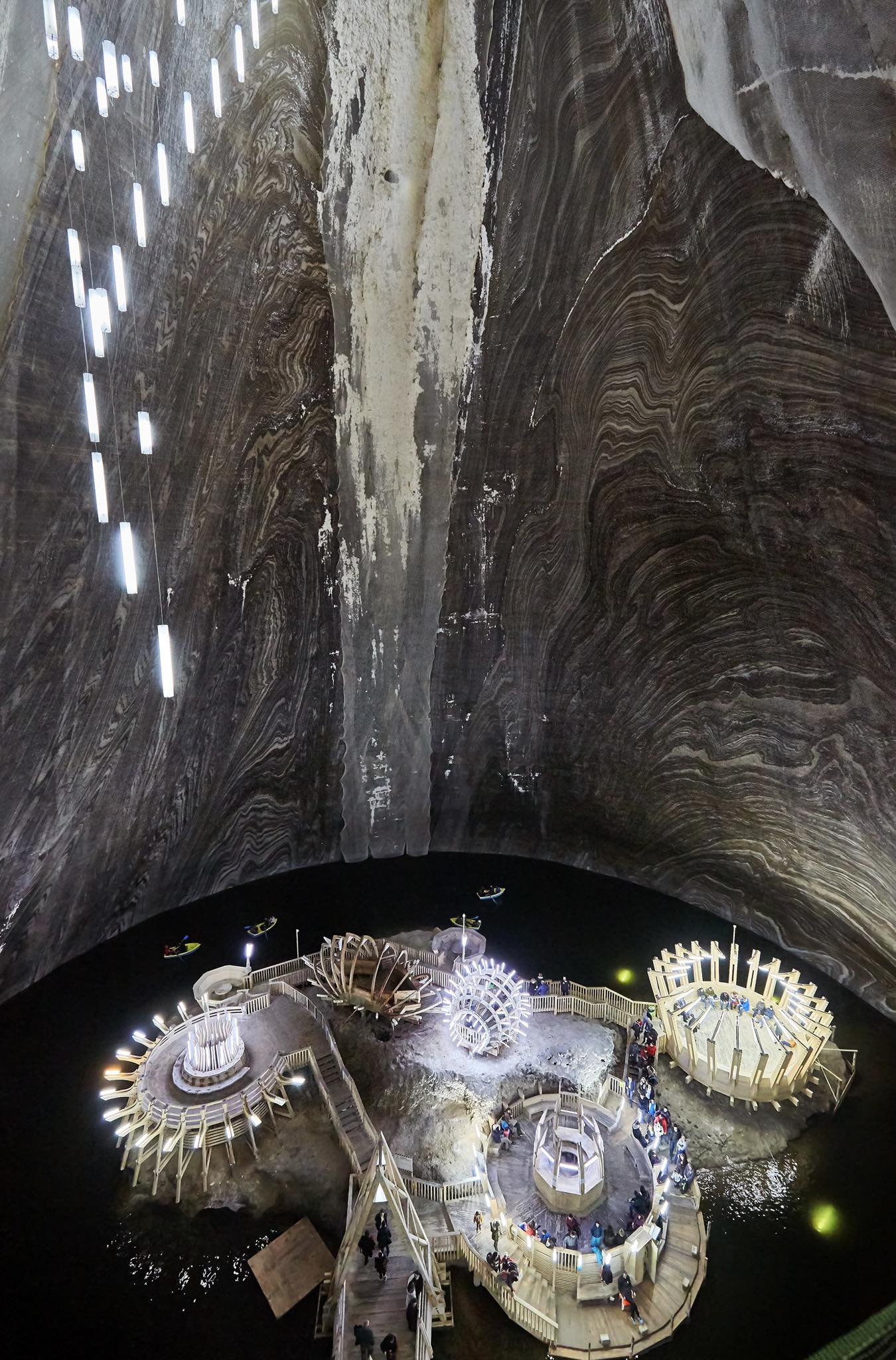 La Salina Turda, trecutul și prezentul se întâlnesc într-o armonie perfectă. Vechea mină, cu pereți brăzdați de mii de straturi de sare, este completată de instalații moderne de iluminat, platforme din lemn și metal, lifturi de sticlă și panouri informative care spun povestea fiecărui colț.
