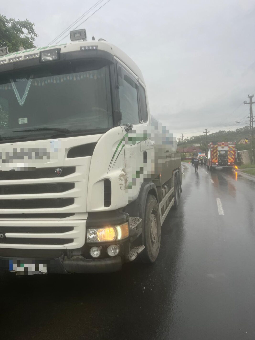 Accidentul a implicat un autocamion încărcat cu produse din carne (mezeluri), care s-a răsturnat în afara părții carosabile, pe partea dreaptă a drumului, și o autocisternă care transporta lapte, rămasă blocată pe carosabil.