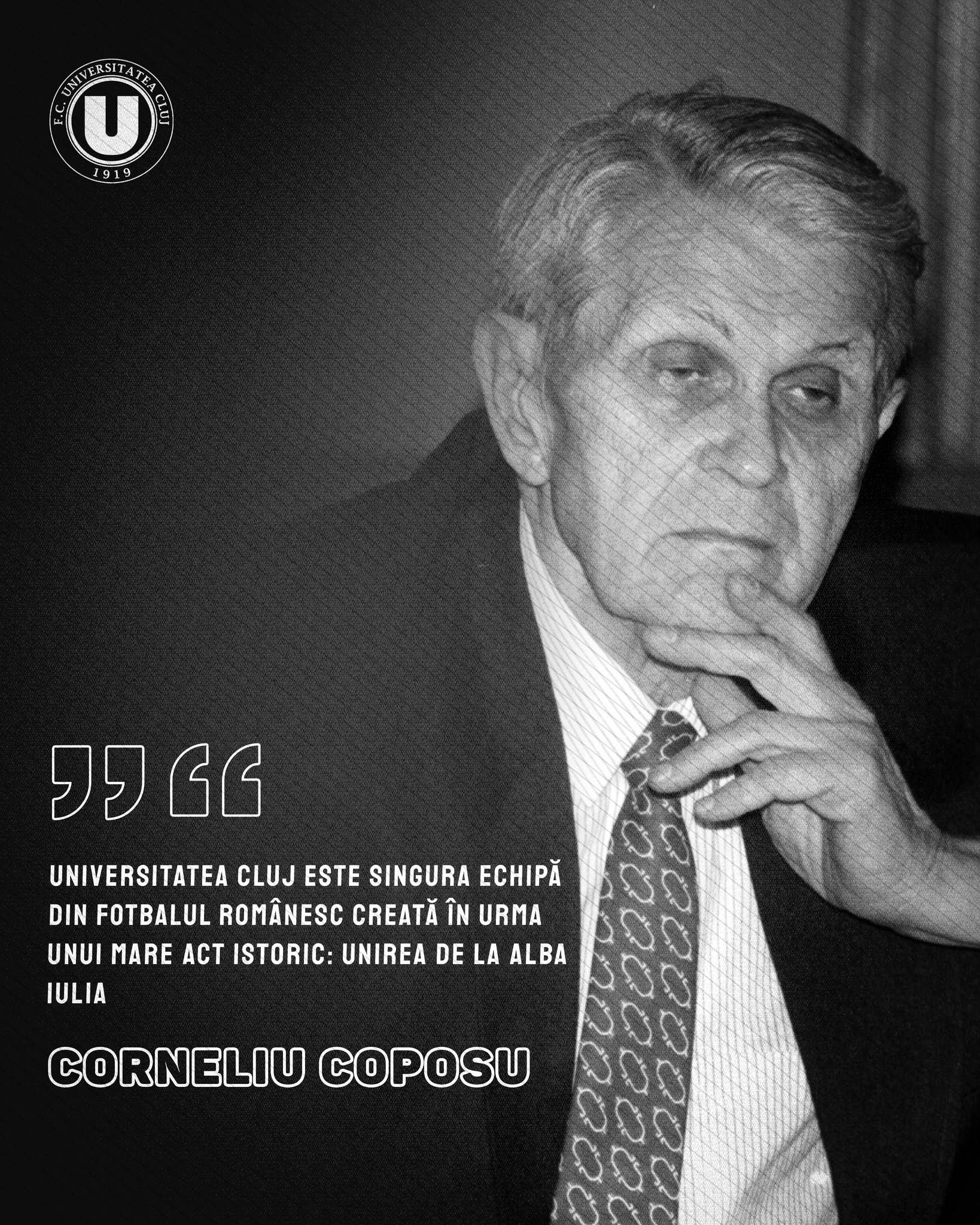Astăzi, când Universitatea Cluj renaște și revine în competițiile europene, după 30 de ani, este un moment potrivit să ne întoarcem la valorile care au stat la baza acestui club. Valorile pentru care a trăit și Corneliu Coposu: demnitate, spirit, onoare, respect și iubire de țară.