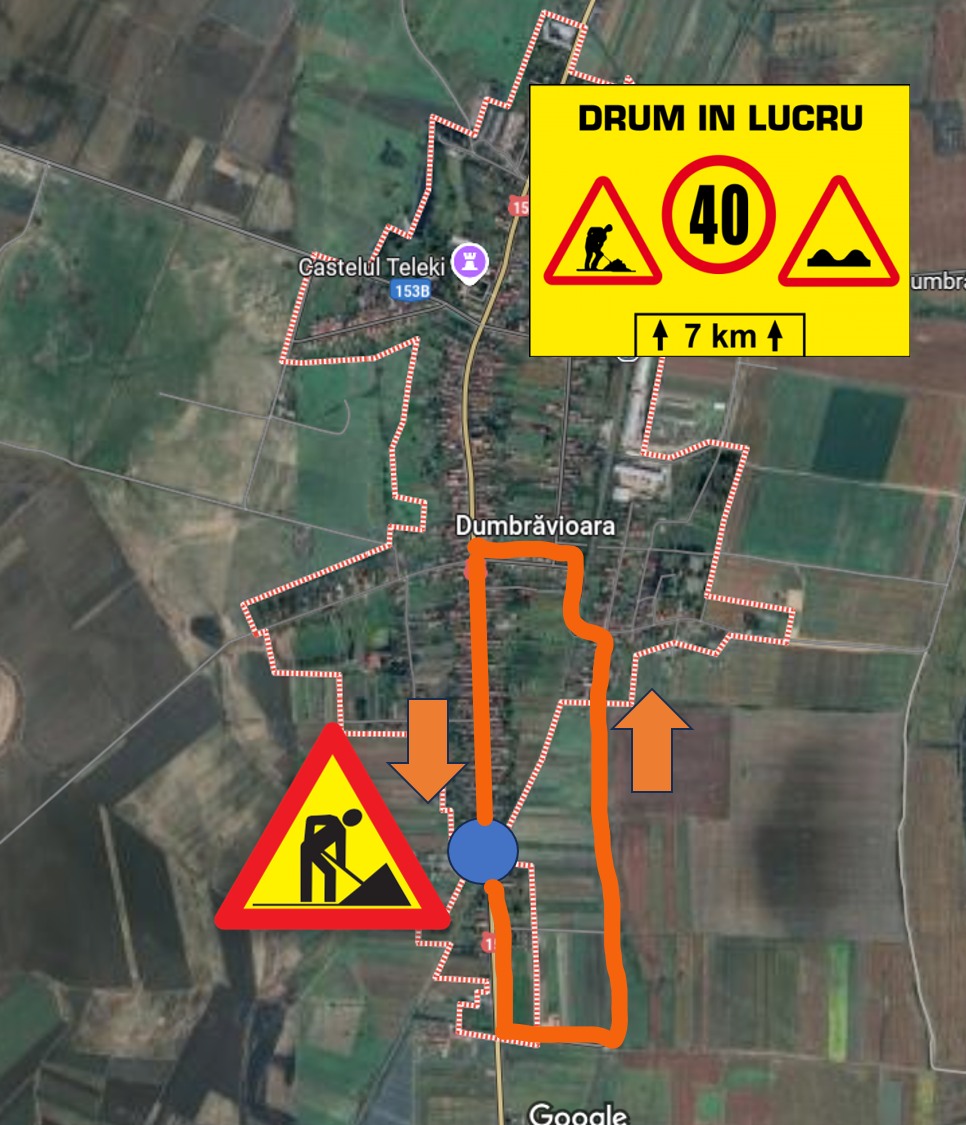 ➡️ Traficul dinspre Târgu Mureș spre Reghin va fi deviat prin localitate, pe o rută ocolitoare temporară.