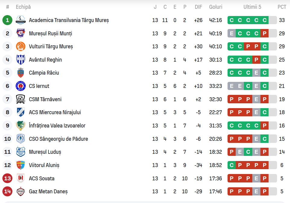 Astăzi au avut loc meciurile contând pentru ultima etapă, a 13-a, a anului 2025 în Liga 4 Elite Mureș.